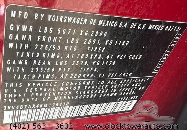| VIN | 3VV4B7AX4KM125410 |
