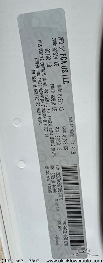 | VIN | 2C3CDXBG7KH613871 |